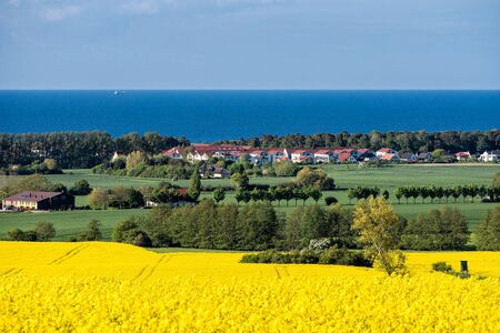 View to the Baltic Sea with canola field.