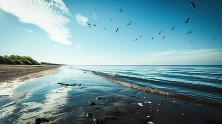 Beautiful coastline of the sea and birds