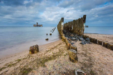 wooden breakwater on Baltic coast, Poland