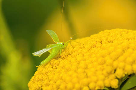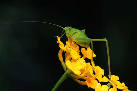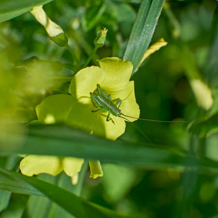 Cricket on yellow flower in the garden