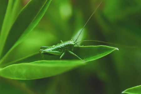 green cricket on leaf in summer