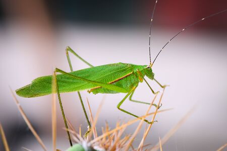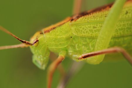 Close up view of Great Green Bush-cricket (Tettigonia viridissima) insect
