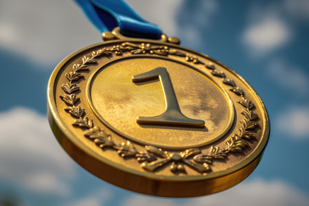 Gold Medal Achievement: Number One Winner Celebrating Victory Success