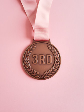 A bronze medal with a pink ribbon, showcasing the achievement of 3rd place.