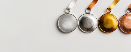 Minimalistic olympic games decorations elegant display of bright medals on white background