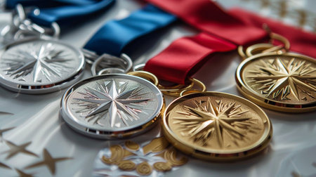 In a high-quality photo, a gleaming silver medal shines, symbolizing the triumph of second place. Witness the spirit of competition and honor in this close-up shot of sporting achievement