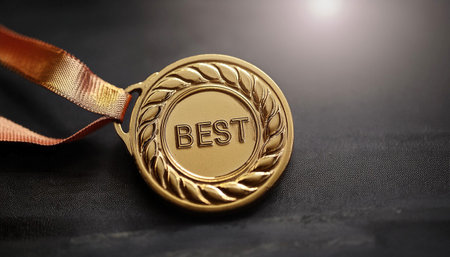 Close up image of a gold medal with the word Best engraved on it, symbolizing excellence, achievement, and success.