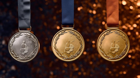 Medals symbolizing success: gold, silver, bronze, created with Generative AI