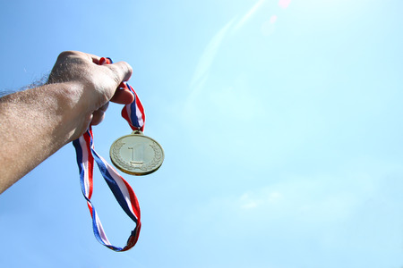 Hand showing medal. Sport, Winner, Success