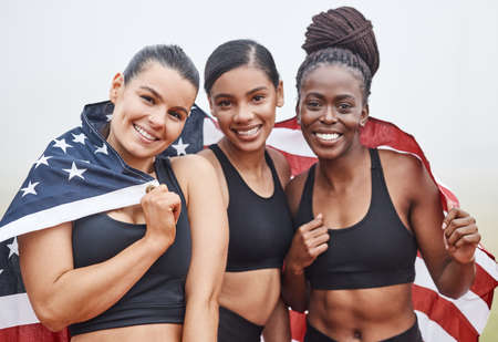 Your teammates are the key to success. female athletes celebrating their win while holding a flag.