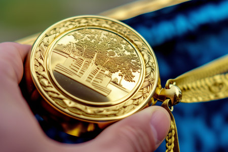 vivid close shot of an olympicstyle gold medal in hand