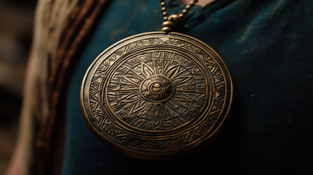 This close-up image showcases a vintage bronze pendant featuring intricate geometric patterns, highlighting the craftsmanship and unique design that speaks to historical elegance.