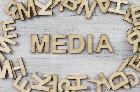 Concept of social media and communication. Wooden cubes with icons on a white background.