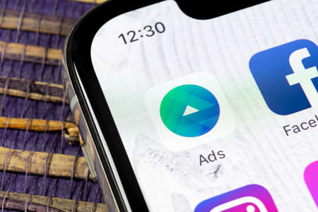 Sankt-Petersburg, Russia, December 5, 2018: Facebook Ads application icon on Apple iPhone X screen close-up. Facebook Business app icon. Facebook Ads mobile application. Social media network