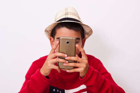 preteen boy isolated on white background