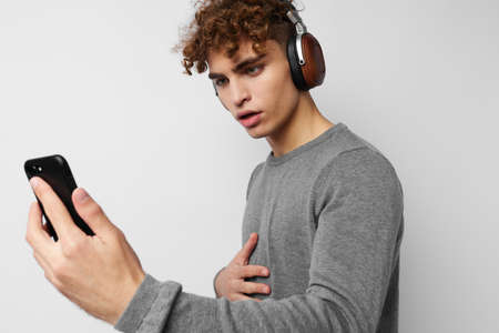 stylish guy looking at the phone headphones fashion Lifestyle unaltered