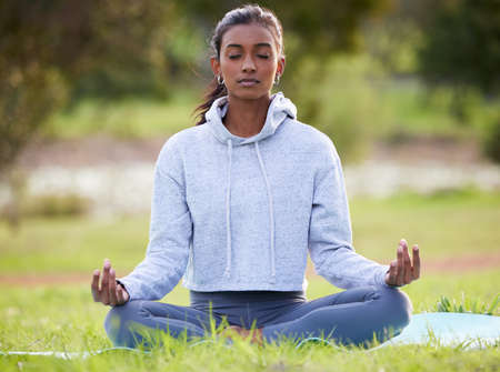 Take the moment to be present and at peace. Shot of a group of young people practicing yoga together outdoors.