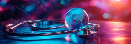 Health protection. Medical and health care concept.Studio macro of a stethoscope and digital tablet with shallow DOF evenly matched abstract on wood table