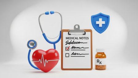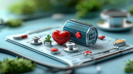Medical stethoscope, tablet with a form for describing the diagnosis, excellent design for any purpose.
