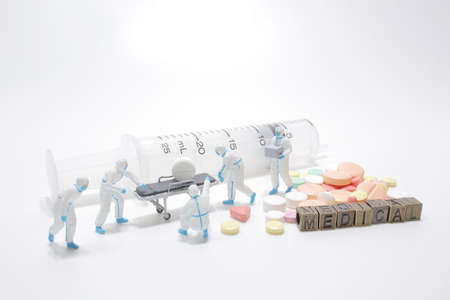 Mini figure doctors and nurses mini figure evacuation of infected patients