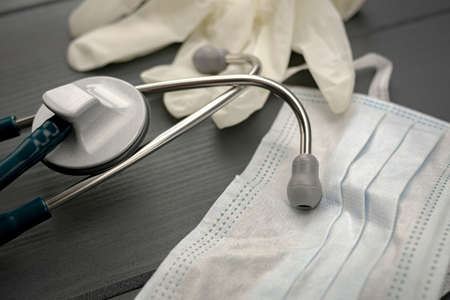 Mask, gloves and stethoscope to detect virus and bacteria infections