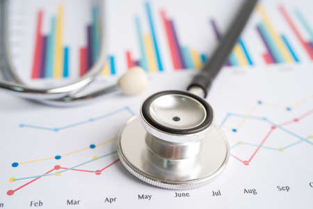 Stethoscope on charts and graphs paper, Finance, Account, Statistics, Investment, Analytic research data economy and Business company concept.