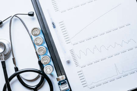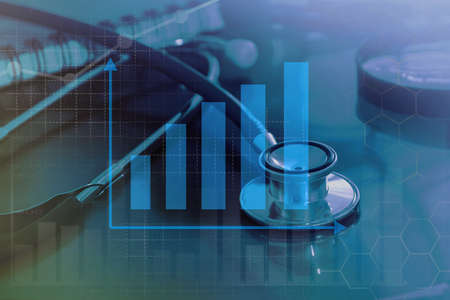 Stethoscope on chart graph paper, finance, account, statistic, analytic economy Business concept.