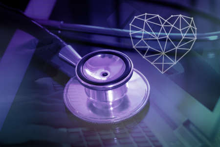 Cardiogram heart on digital table with stethoscope the doctor workplace office