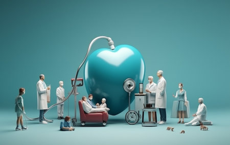 Detailed medical showcasing the intricate anatomy of a human heart in a futuristic digital and sci fi inspired setting