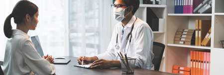 doctor giving consulting and diagnostic to patient and explaining medical informations prevention diseases and diagnosis, in medical clinic or hospital healthcare service center