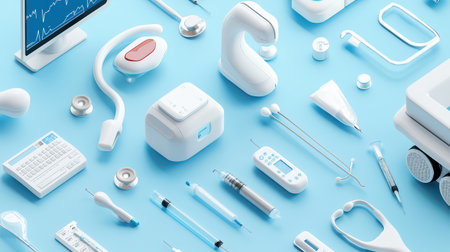 A light blue backdrop showcasing medical equipment illustrations, perfect for hospital newsletters, promotional materials, or health blogs.