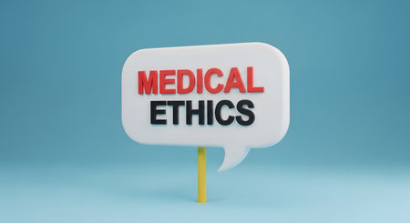 3D render of speech bubble with MEDICAL ETHICS text isolated on blue background