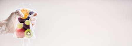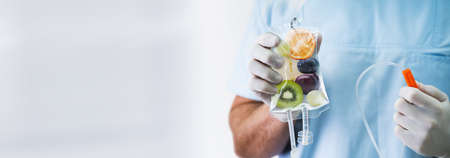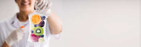 IV Drip Vitamin Infusion Therapy Bag Held By Doctor