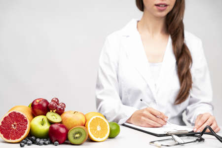 nutritionist having healthy fruit snack. High quality beautiful photo concept
