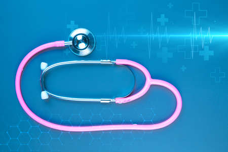 Image of pink stethoscope and heartbeat pulse. medical and healthcare diagnostic concept. Breast cancer awareness, Obstetrician-Gynecologists or OBGYN symbol..