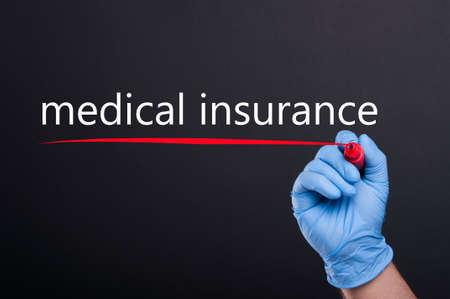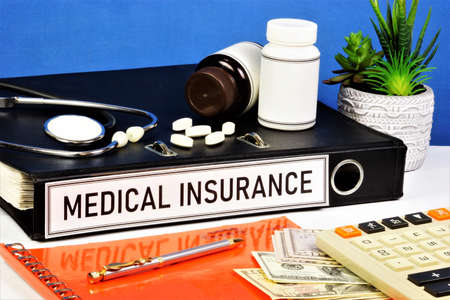 Medical insurance. Text label on the folder. Provides financial well-being covers part of the cost of medical services, by investing in the fund.