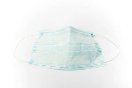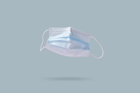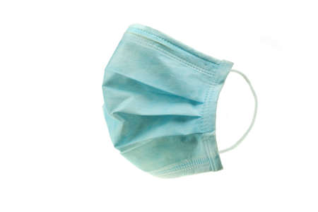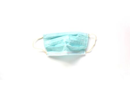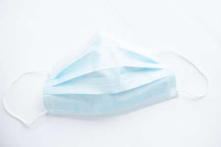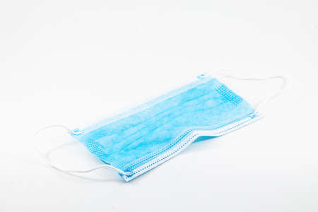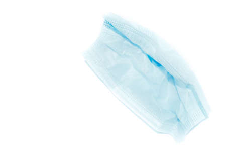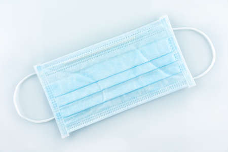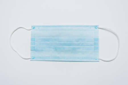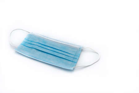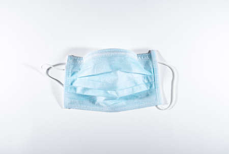 Single isolated blue medical mask for virus protection on white background. The surgical mask is a symbol of protection against the 2020 Coronavirus (covid-19) disease