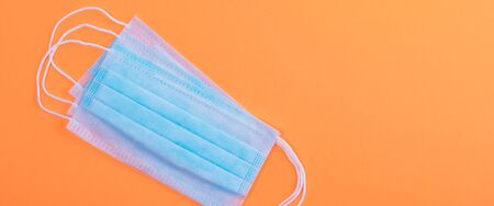 Medical mask surgical protective virus, flu, disease, textile filter. Isolated on a orange background.