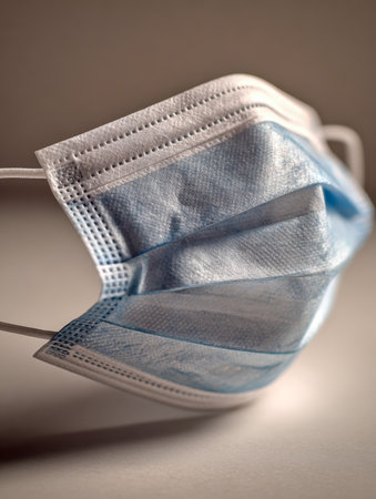 Close-up of a medical face mask on a light background, representing essential health measures and personal protective equipment for preventing respiratory infections during health crises.