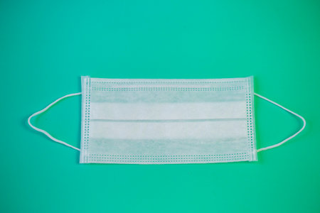Surgical face mask over a white background with copy space in a concept of the prevention and protection against the spread og the coronavirus or Covid-19 during the pandemic