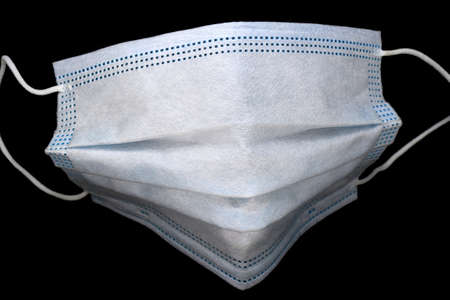 Fresh disposable medical mask white isolated on black background. Protection against coronavirus infection