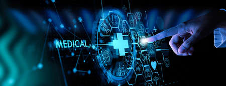 Medicine doctor using modern computer diagnose virtual electronic medical record of patient on interface.Digital healthcare and network on modern virtual screen, DNA medical technology and futuristic concept.