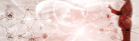 Research medical care concept research of diseases. Doctor working on a virtual screen.