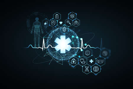 Medical theme hologram drawings. Healthcare concept. 3d rendering.