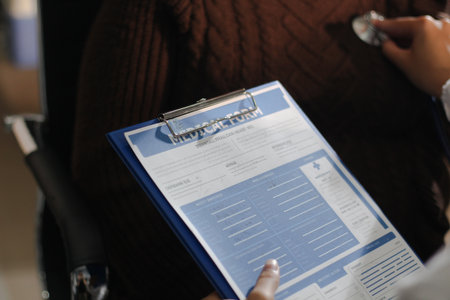 Doctor using computer medical record medical report or medical certificate database of patient's health care