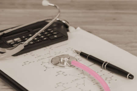 Stethoscope medical documents pen