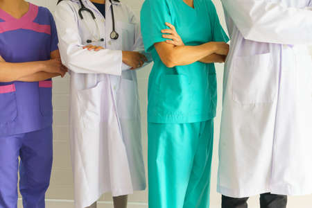 Healthcare people group. Professional doctor working in hospital office or clinic with other doctors, nurse and surgeon. Medical technology research institute and doctor staff service concept.