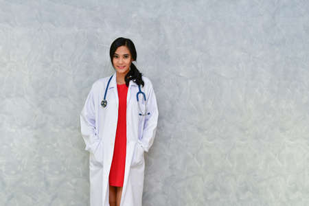 Hospital and doctors help: Portrait of two Asian male and female doctors wearing uniform with stethoscopes