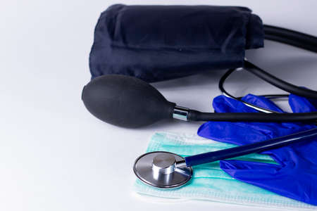 Tonometer in the hands of a doctor. Blood pressure measurement.