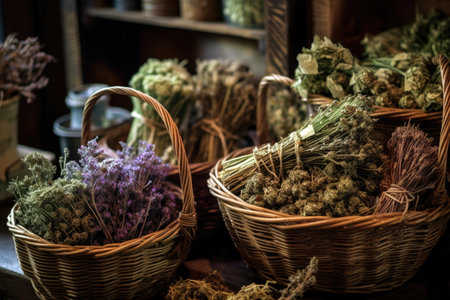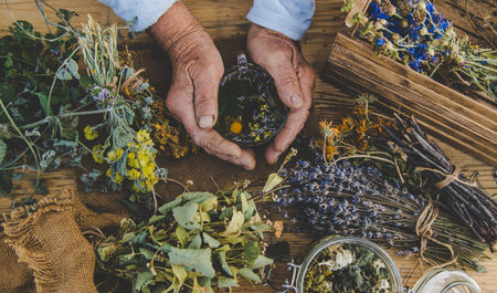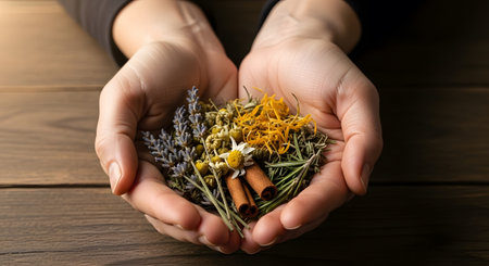 Discover handful of healing herbs for natural remedies. Embrace holistic wellness through herbal medicine. Practice self care with herbal ingredients. AI Generative AI generated